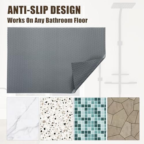 HOMBYS 58 x 32 Extra Large Shower Mat for Shower Stall Tub, Non Slip Bath Mat Bathroom Accessories, PVC Mats for Shower and Bathroom, Quick Drying, Grey