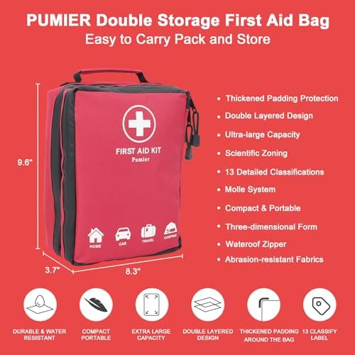 💎【STURDY, STEADY & SHOCKPROOF】- Pumier first aid empty bag is made with wear-resistant 600D Oxford cloth, and there are 10mm thick air cushions filled around the bag, which are anti-drop, seismic, and three-dimensional.