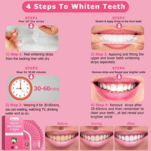 More Strips and Lower Prices: Includes 56 pouches and 112 whitening strips total for complete at-home treatment,Can be used continuously for up to 8 weeks.Enhanced with soothing minerals and natural extracts for comfort.