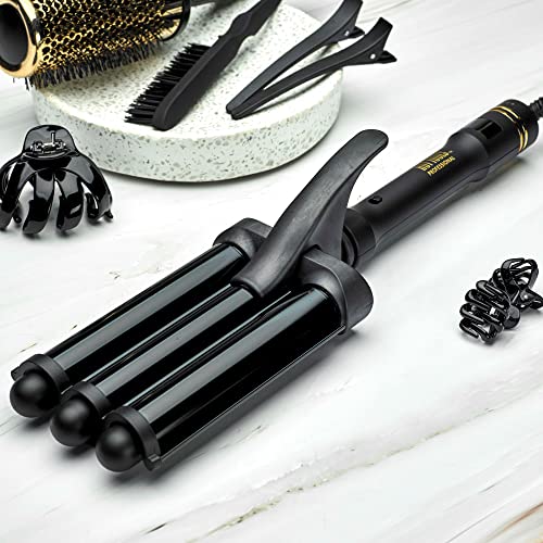 Hot Tools Pro Artist Black Gold Digital 3 Barrel Jumbo Hair Waver | Ultra Sleek Waves Instantly (1 in Barrels)