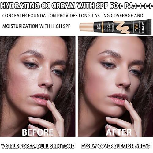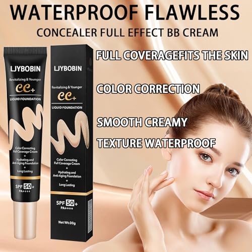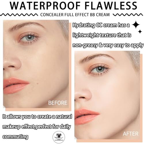 Hydrating CC Cream with SPF 50+ PA++++,Waterproof Flawless Concealer Full Coverage BB Cream for All Skin Types,Long Lasting Moisturizing Full Coverage Liquid Foundation for Men & Women(Natural)
