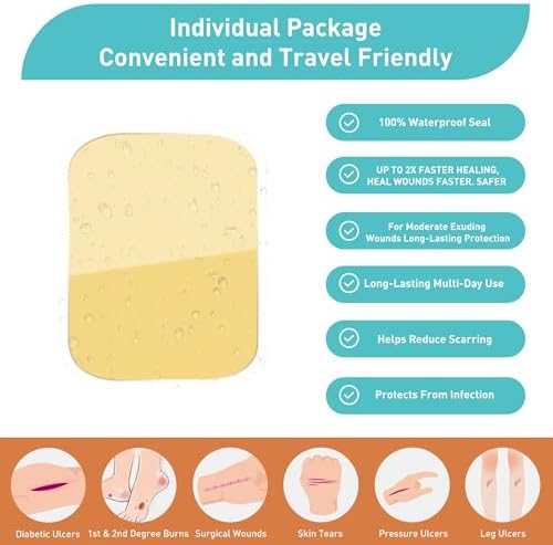 Large and Waterproof: Our hydrocolloid dressing comes in a generous size and is completely waterproof, providing effective protection for wounds and promoting faster healing.