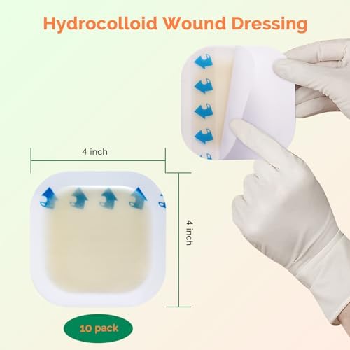 Hydrocolloid Dressing 4″ x 4″ Thin Large Patch Hydrocolloid Bandages with Self Adhesive Waterproof Wound Dressing for Burn Bedsore Burn Blister Acne Care Wound Care