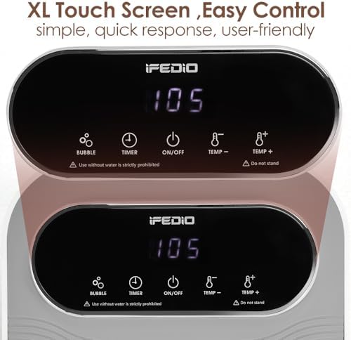 [ Intelligent Temp Control ] – Enjoy a relaxing, customized foot spa experience with temperature control ranging from 95°F to 118°F. This foot spa with heat and jets will maintain your preferred temperature, displayed on the touch screen.