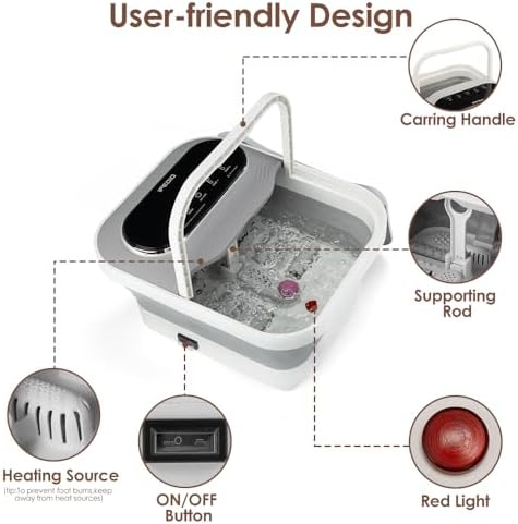 [ Collapsible Design & Handle&Support Rod ] – The heated foot spa tub boasts 6 non-motorized massage rollers for a deep-tissue experience. The removable pedicure stone allows for at-home care and removal of dead skin. Perfect Christmas Gifts! Mother’s Day Gift!