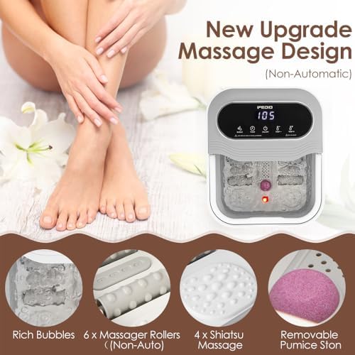 iFedio XL Touch Screen Collapsible Foot Spa with Heat, Bubble and Temperature Control, Foot Bath Massager with Massage Rollers, Foot Soaking Tub, Pedicure Foot spa for Stress Relief (Grey)