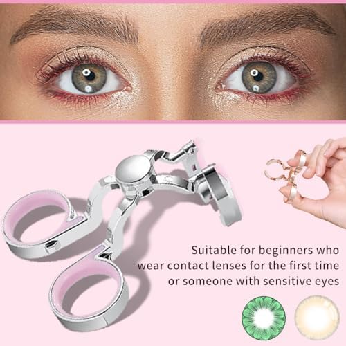 iGeyzoe Contact Lens Wearing Aids, Portable Contact Lens Eyelid Stretcher, Color Contact Lens Wearing Tool With Insert or Remove Tool/Tweeers/Contact Lens Case (Pink)