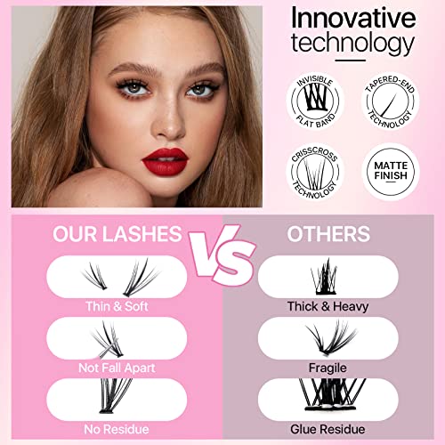 【HIGH QUALITY CLUSTER LASHES】Each eyelash clusters are made of high-quality PBT, which is handmade, light and soft, knot free, and non stimulating. Individual Lashes can be easily picked up without falling apart.