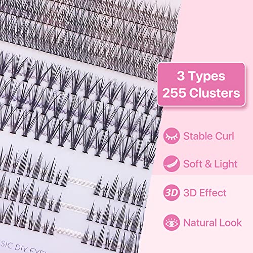 Individual Lashes 255 Clusters Lashes 3 Types Natural Eyelash Extension Kit 12-14mm False Eyelashes for Make Up DIY