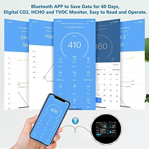 ➤【Portable and Convenient】: Made of durable ABS material, this air quality monitor is compact and lightweight. The Bluetooth app allows you to save data for up to 60 days, you can track changes in your indoor air quality over time.