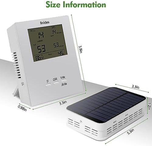 VERSATILITY: The briidea indoor outdoor air quality monitor can real-time measure PM2.5 and AQI (Air Quality Index) levels, as well as their maximum values within 1 hour or 24 hours. It can also measure various parameters such as air quality level, indoor temperature, relative humidity, and sensor battery life. With its multifunctionality, this device provides more comprehensive data, helping you understand the overall air quality of your surroundings