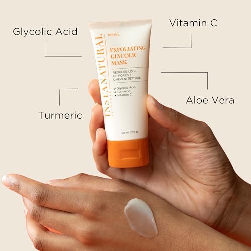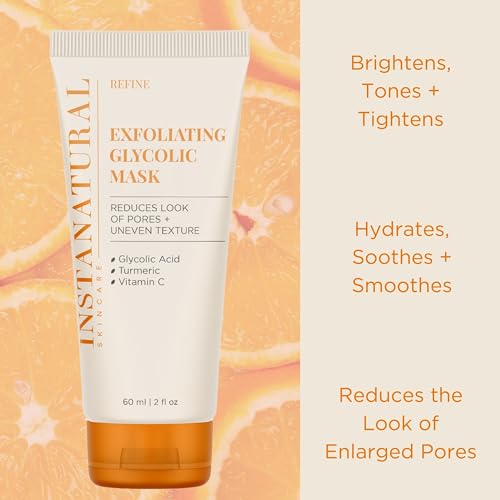 InstaNatural Exfoliating Glycolic Acid Face Mask for Women & Men, Gentle Exfoliator, Pore Minimizer, Anti Aging, Blackhead Remover, Acne Facial Treatment with Vitamin C and Turmeric, 2 Fl Oz