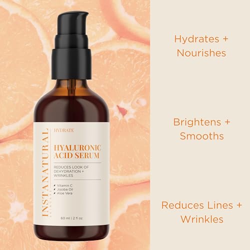 InstaNatural Hyaluronic Acid Face Serum, Brightens, Hydrates, Reduces the Look of Fine Lines and Wrinkles, with Vitamin C, Jojoba Oil, and Aloe Vera, 2 Fl Oz