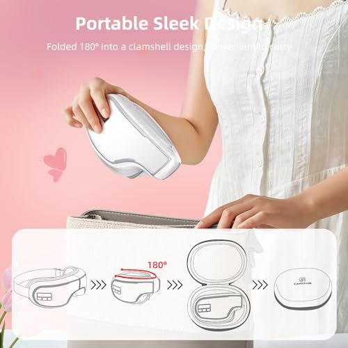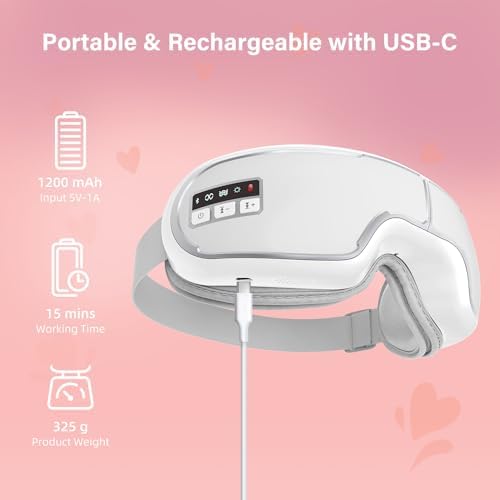 Intelligent Heated Eye Mask with Bluetooth Music for Migraines,Massager for Relax and Improve Sleep,Reduce Eye Strain,Dark Circles,Dry Eyes,Birthday,Mother’s Day Gift-White