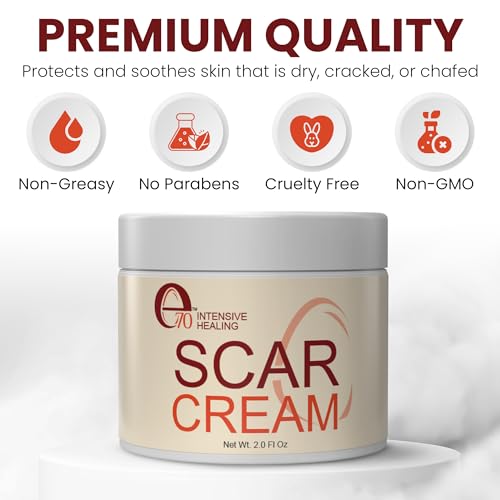 FULL OF NUTRIENTS: Our e70 Intensive Healing scar cream supplies your skin with the essential nutrients (vitamins, minerals, and proteins) it requires to repair and decrease the look of a scar. Nutrition is vital to the repair process.