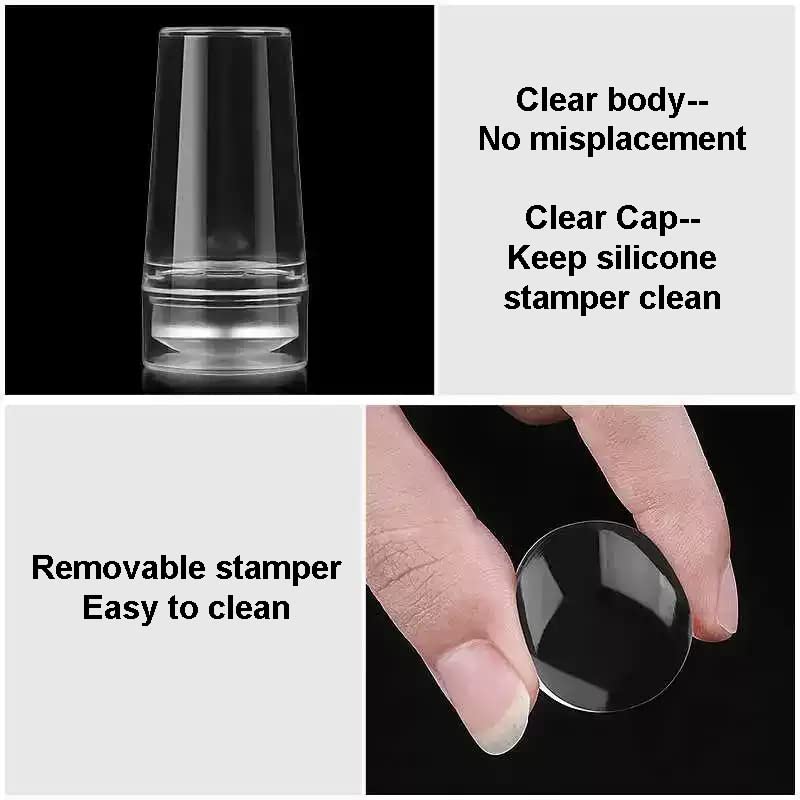 HipGirl Nail Art Tools and Nail Art Supplies. Clear silicone jelly nail art stamper with scraper nail design kit. Clear nail stamps body make it easy to pick up pattern from nail stamping plate and position to nails: no more guessing. Large stamper head fits most of our natural nails. Big size scraper makes it easy to hold and scrape the exceed polish from nail plates.