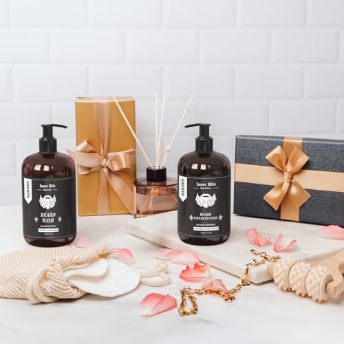 ISNER MILE Beard Wash and Conditioner Set 17 oz New Beard Formula with Biotin Argan & Jojoba Oils Smooth Soften Strengthen Beard Shampoo with Beard Oil Conditioner Gifts for Men