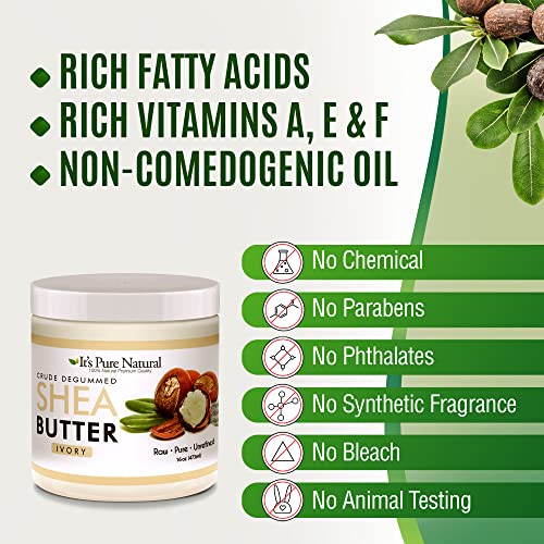 It’s Pure Natural – World’s First Crude Degummed African Ivory Shea Butter (16 oz) – 100% Pure & Natural Body Butter for Dry, Cracked Skin, Eczema, Stretch Marks & Anti-Aging