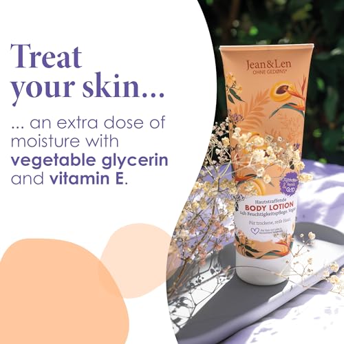 Scope of supply: 1 x 8.45 Fl. Oz. Jean&Len skin firming body lotion apricot kernel oil & Q10, for dry and mature skin, 24h moisturizing care, without parabens & silicones, body lotion for men & women