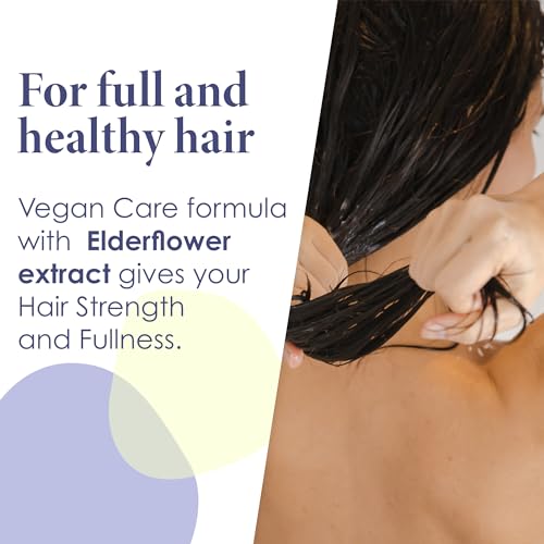 vegan formula with elderflower extract helps to strengthen flat and fine hair right to the ends, providing natural