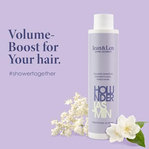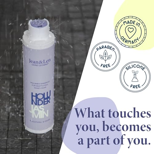 Jean and Len Volume Shampoo with black elderflower extract and jasmine makes fine hair look healthier and more magnificent – Made with love in Germany