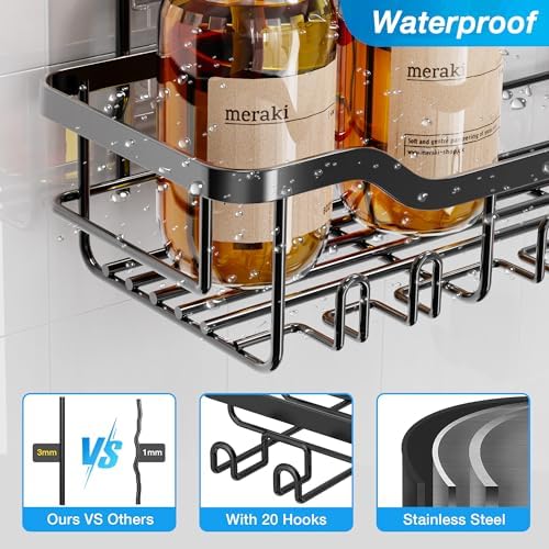 【More Clean And Tidy】JELLYMONI Shower Caddies are a perfect choice for keeping the bathroom or kitchen items well organized and within easy reach, making full use of space.The large storage capacity allows you to store more items, and the fence prevents items from falling.