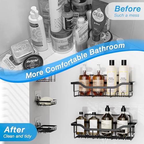【Easy Installation】JELLYMONI shower organizer for the inside shower simply stick adhesives, no drilling, without any tools needed, no damage to the walls. Bringing great decoration to the bathroom.