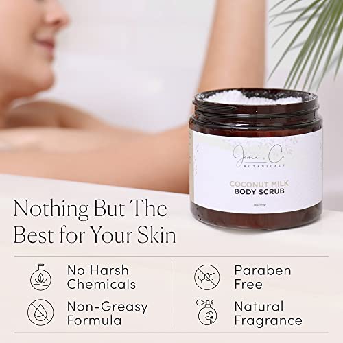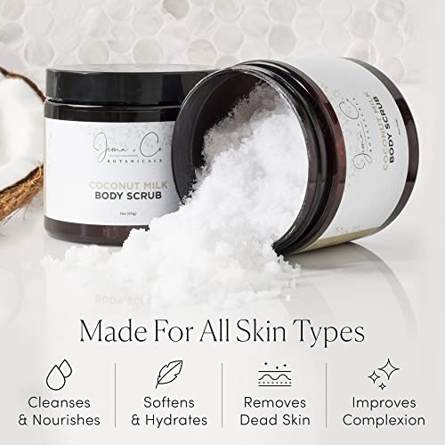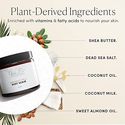Jema & Co. – Exfoliating Body Scrub, Body Exfoliator with Shea Butter, Coconut & Sweet Almond Oil, Moisturizing Dead Sea Salt Scrub (Coconut Milk, Large, 16 Ounce)