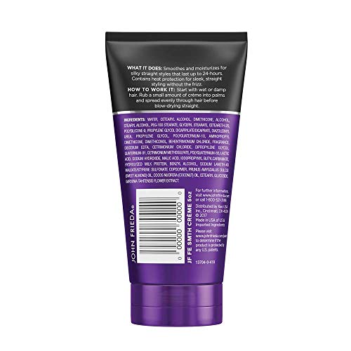 Block out frizz and keep hair sleek and straight for up to 24 hours with John Frieda Frizz Ease Straight Fixation Styling Creme. This hair-straightening cream with ThermaGuard® Complex protects against heat damage while helping you achieve perfectly styled, sleek straight hair. A straightening, smoothing styling cream that moisturizes and smooths frizzy hair for silky-straight style. This product can be used daily to keep your hair glossy, in place, and fights frizz for up to 24 hours! Infused with milk protein and sweet almond oil, it conditions hair, perfect for sleek, shiny, hair frizz-free hair