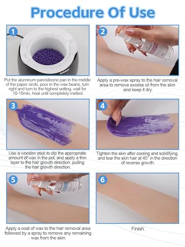 【Powerful Removal Effect】Experience truly powerful hair removal with Kalolary waxing kit! These small beads are designed to tackle even the most stubborn hair, while being gentle and effective. It can firmly grasps each hair firmly to remove it from the roots, preventing breakage or brittleness, and resulting in long-lasting smoothness and weeks of silky and flawless skin.