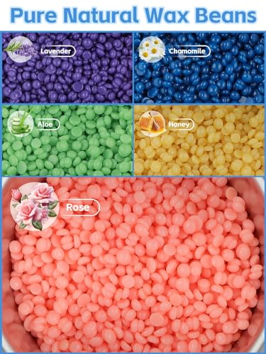 【100% Natural Ingredients】Our at home waxing kit for women includes honey, aloe vera, roses, lavender and chamomile 5 different wax beads, which are made of gentle and protective ingredients to help minimize skin irritation and inflammation, provide maximum protection against skin damage. Suitable for all skin types, including sensitive skin, and can be used on arms, legs, back, armpit, chest, bikini lines and etc.