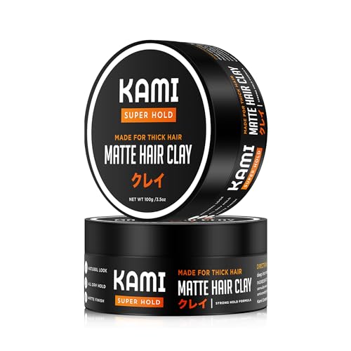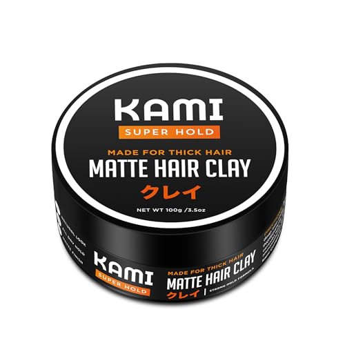 Kami Matte Hair Styling Clay for Men – Strong Hold, Ideal for Thick Hair – Natural Matte Finish – Premium Hair Clay for Men Styling, Strong Hold Mens Hair Clay Product, Long Lasting Men Hair Clay