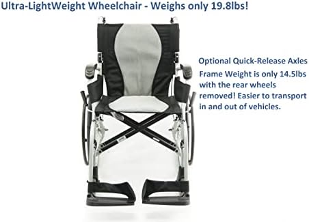 Karman K-2512 19 lbs Ultra Light Ergonomic Wheelchair with Removable Footrest and Quick Release Wheels