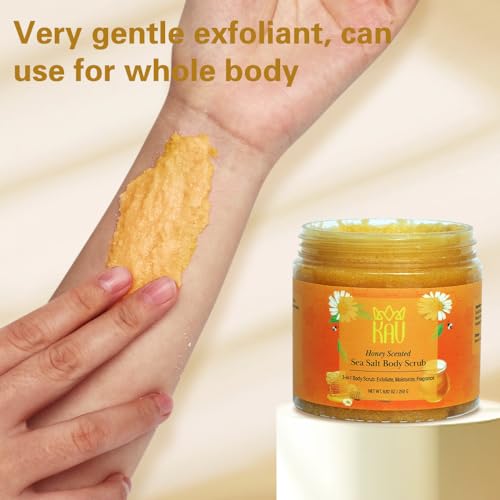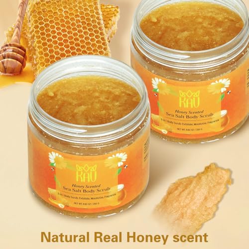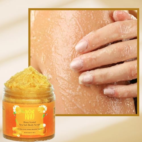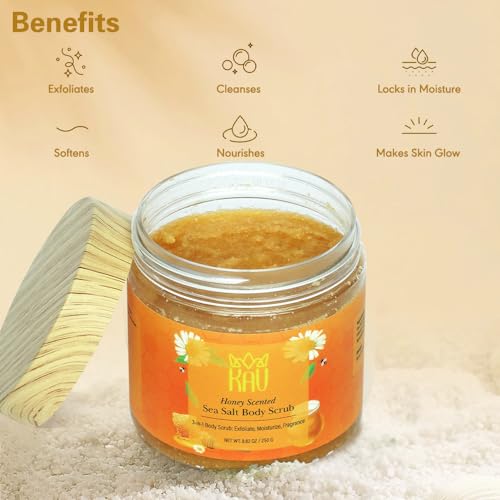 KAV Salt Body Scrub – Natural Exfoliating Salt Scrub for Body and Face, Helps with Moisturizing Skin, Dead Cell Removal, Rejuvenation and Relaxation, 4 Scents (Honey)