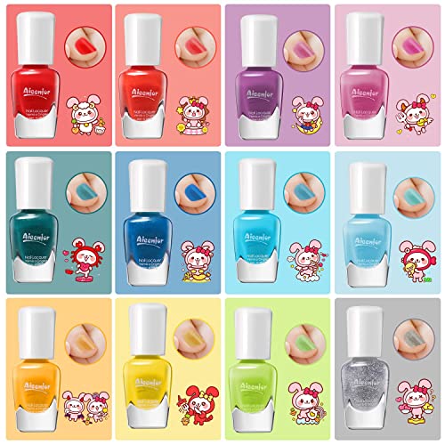 Kids Nail Polish Kit, 12 Color Toddler Nail Polish Set Non Toxic Peel-Off Safe Water Based Low Odor for Girls Ages 5+ Gift for Makeovers and Birthday Zodiac Theme