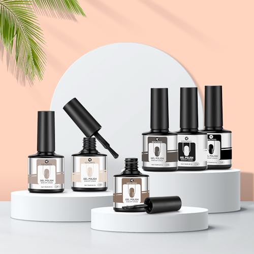 KINGMAS Gel Nail Polish Set, 6 Color Caramel Collection Gel Polish Kit Soak Off UV LED Gel Nail Kits Nail Art Design Decoration Gift for Girls Women Home DIY