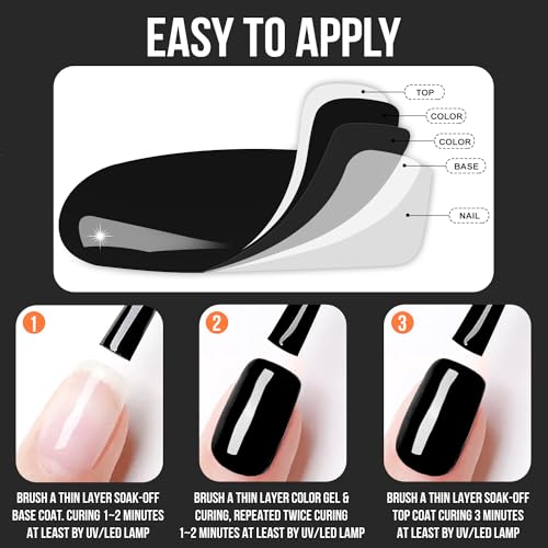 SOAK OFF UV LED GEL NAIL POLISH: All seasons gel nail polish set need to be cured under LED nail dryer. Base and Top coat required. Average for LED nail lamp 60-120 secs. This item is UV gel. It is still sticky after curing. It must be used with a base coat and top coat! This item does not include base&top coat, which needs to be purchased separately.