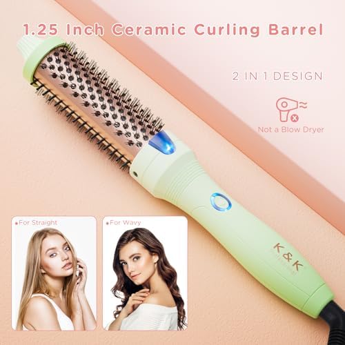 K&K 1.25 Inch Curling Iron with Tourmaline Ceramic Barrel, Professional 1 1/4 Inch Hair Curler up to 356°F Dual Voltage for Traveling, Hair Waving Style Tool, Ionic Thermal Brush