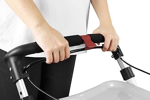 ♥ COMFORTABLE AND SAFE: For maximum adaptability and comfort, the narrow rollator walker has 5 height adjustments and a single-axis handlebar for one-handed use. Its more sensitive braking system that requires less force increases user safety.
