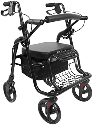 KMINA – Rollator Wheelchair Combo for Smooth Terrain, 2 in 1 Rollator Transport Chair, Narrow Rollator Walker Wheelchair, Folding Rollator Walker with Seat for Seniors, Dual Rollator Walker Black