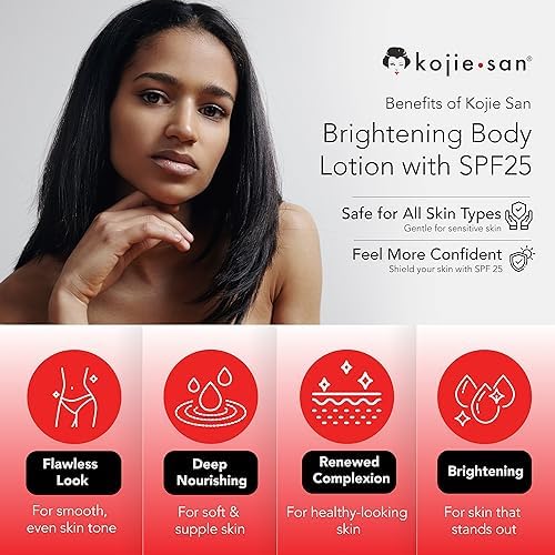 Get Nourished, Brighter Skin: Bid farewell to skin imperfections and achieve even, glowing skin. This Kojie San body lotion nourishes and brighten the skin, reducing discoloration and visible signs of aging for an overall radiant complexion.