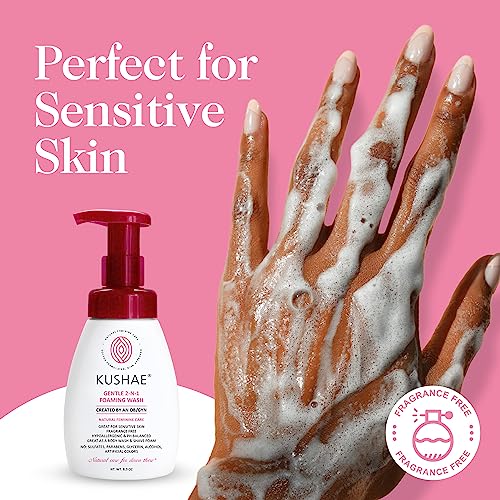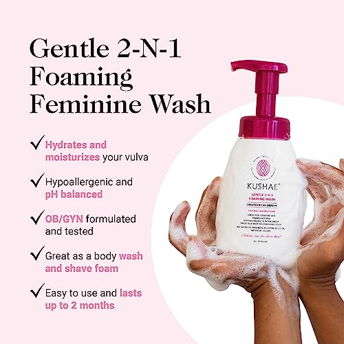 Kushae Gentle 2-in-1 Foaming Wash, pH Balance Feminine Wash for Optimal Hygiene, Refreshing & Soothing Feminine Wash for Sensitive Skin, Fragrance-Free Intimate Wash for Daily Use, 8.3 oz