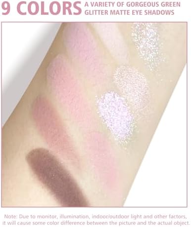 KYDA 9 Colors Warm Tone Eyeshadow Palette, Matte Light Purple Pink High Pigment Blendable Shades, Sparkling Powder Eyeshadow, Glitter Shimmer Eye Shadow, Daily Bright Eyes Makeup Palette