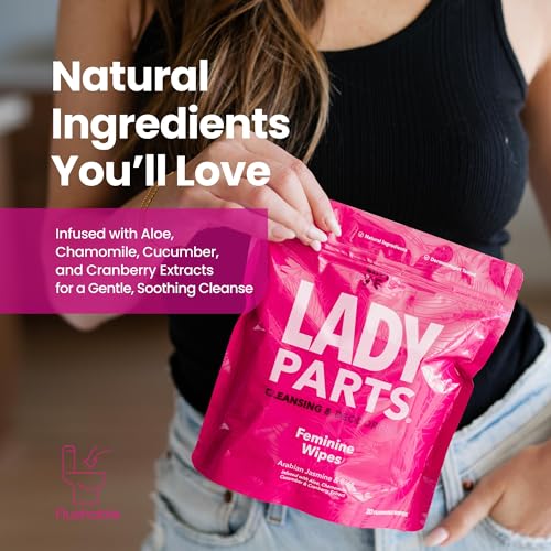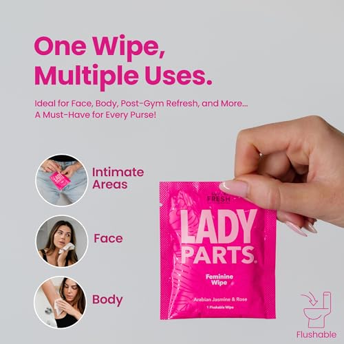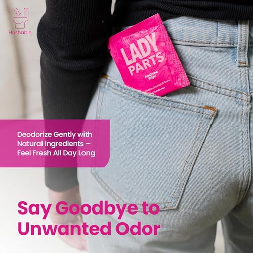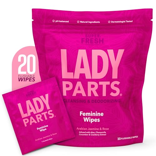 Lady Parts Feminine Wipes – Flushable Wet Wipe for Women – Ph Balance for Privates, Body, Booty, & Face – Good for Travel & Intimate Areas – Stay Fresh & Clean – 20 Wipes