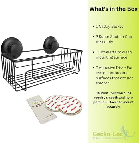 The Gecko-Loc Super Suction Shower Caddy Basket looks as great as it performs, made of powder coated, anti-rust stainless steel and ABS. This is a durable piece of hardware that will last you for many years to come. And while most customers use it for the shower, it’s also handy in the kitchen and other rooms in your home! Works best on ceramic tile, glass, granite, stainless steel, acrylic, laminate and any other glossy, non-porous surface.