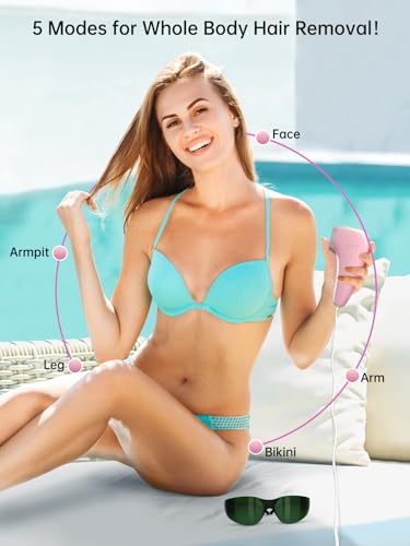 【✅5 Modes with 5 Level—Whole Body Treatment✅】The IPL hair removal offers different energy levels and modes for you to choose, accommodating different treatment area and skin sensitivity. It’s recommended to start from the lowest level for the first-time use. It is not only the first choice for women to remove hair on bikini lines, underarms, lip, but also the ideal tool for men to deal with hair on the chest, back, arms, abdomen and legs.