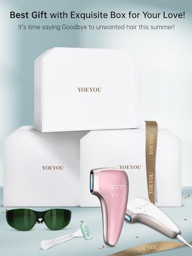 【👍Fashionable Outlooking with Upgraded Function—Visible Result in 3 Weeks👍】YOEYOU U7 IPL hair removal device adopts advanced IPL technology and its pulsed light wavelength ranges from 600 nm to 1200 nm, which can quickly penetrate deep into the root of hair follicles, break the hair growth cycle, more effectively and safely achieve permanent results. Visible reduction in hair can be observed in just 3 weeks and the hair removal rate is as high as 96% after 7-8 weeks of treatments.