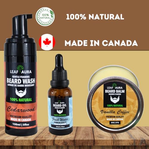 Leaf Aura Beard Care Kit- Comes With Beard Wash, Beard Oil, Beard Balm, Moustache Wax, Boar Bristle Brush & Comb- Ultimate Gift For Men