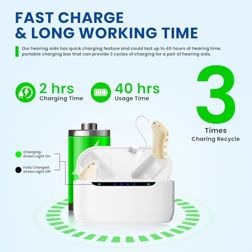 【Rechargeable Hearing Aids】With magnetic absorption charging, hearing aids can be fully charged in just 2 hours and used for up to 40 hours, so you never have to worry about missing a conversation.