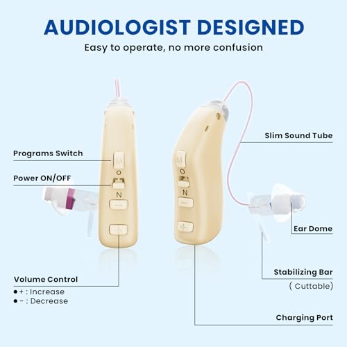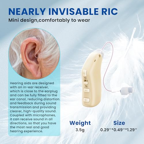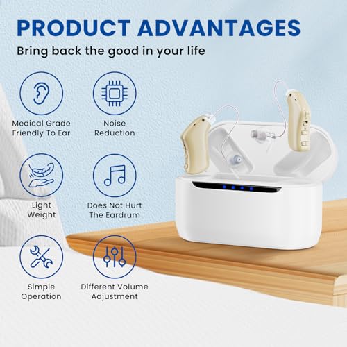 LEEL Hearing Aids for Seniors, Rechargeable Hearing Amplifier with Charging Case, Self-control with 4 Programs, Simple Settings and Easy to Use (Beige)